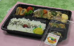 毎月1回、19日の「食育の日」に合わせて、1日の野菜摂取目標量(350g)の1/3 が摂れる弁当を配達しています。
