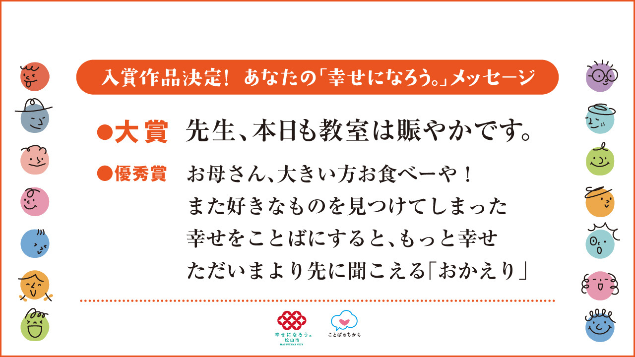 松山市は、正岡子規をはじめとする多くの先人たちが残してくれた豊かな文学的土壌を大切に受け継ぎ、「ことば文化」をいかしながらまちづくりを進め、全国に「ことばを大切にするまち松山」を発信しています。