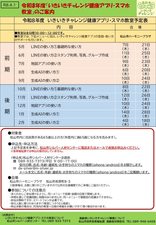 令和8年度「いきいきチャレンジ健康アプリ・スマホ教室」を実施します