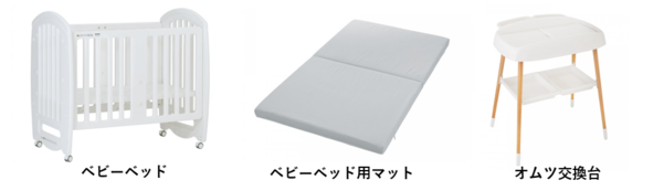 ベビーベッド、ベビーベッド用マット、オムツ交換台
