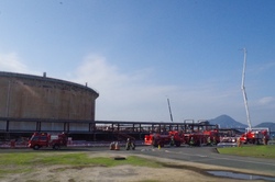 【陸上訓練】地震で塩素が漏えい、危険物火災が発生