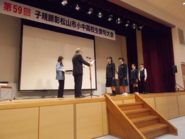 松山市教育長、受賞者とその保護者、教員ほか 300人程度