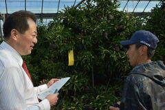 東京都大田市場で行う「せとか」のトップセールスに先立ち、松山市長が生産地を視察します