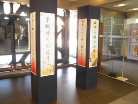 子規の俳句行灯をロビーに飾り、元日は常設展や特別展の観覧者に、新春お年玉抽選会を行います。
