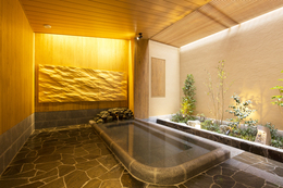 道後温泉別館 飛鳥乃湯泉の浴室内の露天風呂で、柑橘の爽やかな香りと湯の温もりで癒しを提供します。