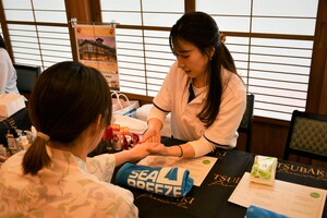 利用者にファイントゥデイ商品のサンプルをプレゼントするほか、ファイントゥデイ社員が湯上り体感会を開催します。加えて、河原学園の学生が「つばき」をデザインしたオリジナルお菓子を2階休憩室の利用者にプレゼントします。