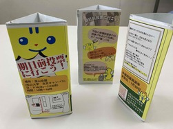 松山大学で啓発グッズを配るほか、期日前投票所を設営します