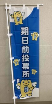 ●選挙コンシェルジュが制作したのぼりを設置します。