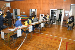 粟井小学校の体育館では、自主防災組織等が中心となり、避難所開設訓練を実施し、開設手順の確認を行いました。