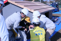安岡避難地では、粟井小学校の児童による避難訓練、自主防災組織や児童による初期消火訓練、ガレキからの救出訓練、防災関係機関による情報収集訓練や道路啓開訓練、救出救護訓練などを実施しました。