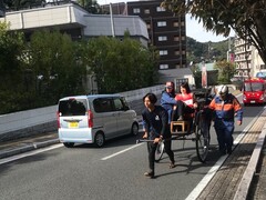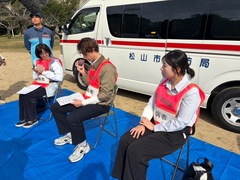 【令和7年秋季全国火災予防運動】初めてインバウンド対応の救護ブースを設け、第10回道後温泉周辺地区合同防災訓練~安全・安心を湯けむりにのせて、道後から世界へ~を実施しました