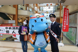 また、フジグラン松山では、防火リーフレットを配布しながら来店者へ声掛けを行い、防火意識の向上を呼び掛けました。