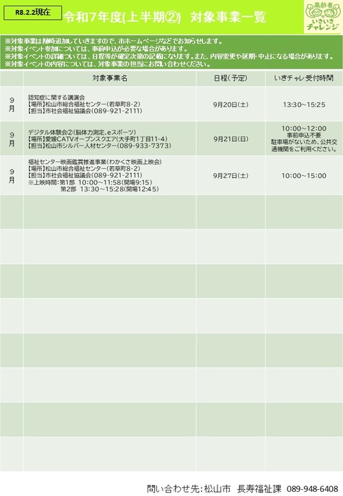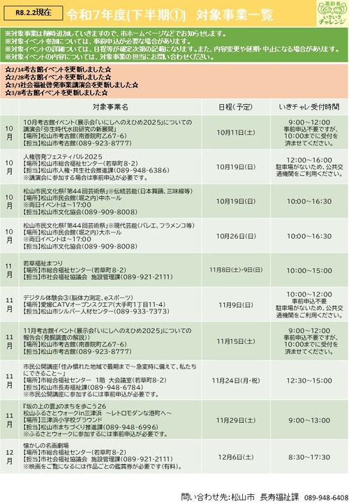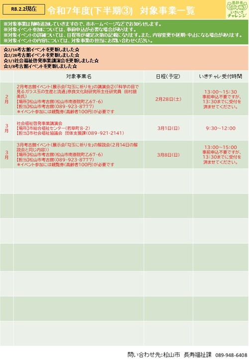 対象イベント予定表(R8.2.3時点)はこちらからダウンロードできます。(PDF:427KB)