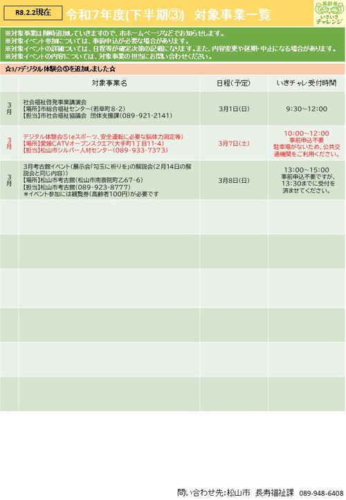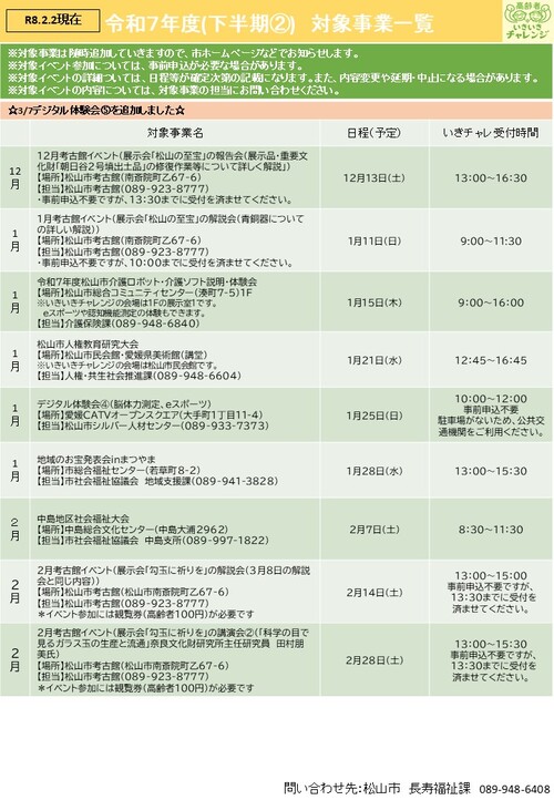 対象イベント予定表(R8.2.17時点)はこちらからダウンロードできます。(PDF:425KB)