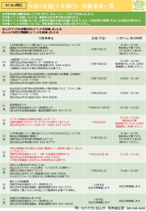 対象イベント予定表(R7.10.1時点)はこちらからダウンロードできます。(PDF:390KB)
