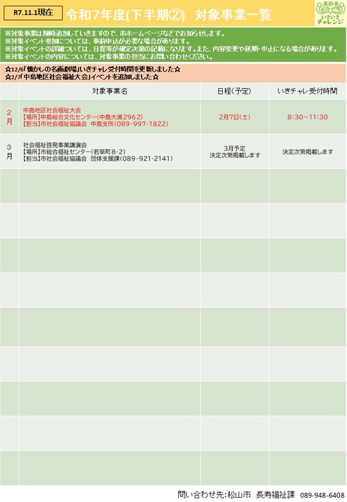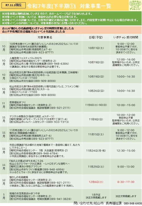 対象イベント予定表(R7.11.1時点)はこちらからダウンロードできます。(PDF:392KB)