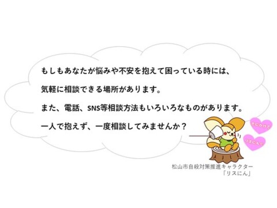 関係団体とも連携して「誰も自殺に追い込まれることのない社会」の実現に向け、松山市でも啓発ブースの設置や相談先の周知を行います。