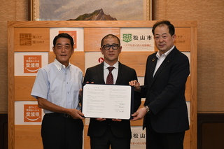令和7年9月22日(月曜日)、愛媛県庁で、ラーグ株式会社(本社:東京都)と愛媛県及び松山市によるシステム開発拠点の立地に関する「立地協定書」調印式を開催しました。