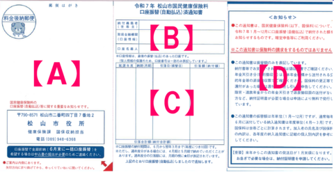 - この通知書は、社会保険料控除の申告等のために、国民健康保険(以下、国保)料のうち前年1月~12月に口座振替(自動払込)で納付された金額をお知らせするものです。