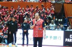 プロバスケットボールBリーグ2025-2026シーズンホーム開幕戦で、愛媛オレンジバイキングスVSベルテックス静岡の試合が行われ、試合開始前に挨拶をしました。