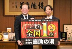 伊予の湯治場 喜助の湯が「ニフティ温泉年間ランキング2025 岩盤浴部門第1位」を受賞し、運営元のキスケ株式会社の表敬を受けました。