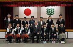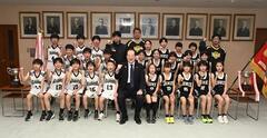 令和8年3月28日から31日まで東京都で、第57回マクドナルド全国ミニバスケットボール大会が開催されます。愛媛県代表で出場する男子チームの石井レイダースと女子チームの石井女子MBCの皆さんの表敬を受けました。