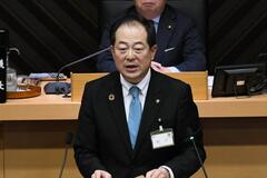 所信表明演説をする市長