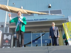 初めて「横須賀朝市×えひめ松山フェア」を開催しました。オープニングセレモニーに出席し、松山の魅力をPRしました。