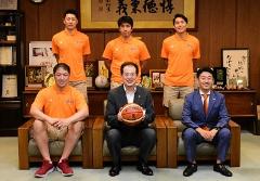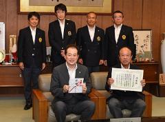 9月24日 愛媛オレンジバイキングスの皆さんが市長を表敬訪問(市役所)