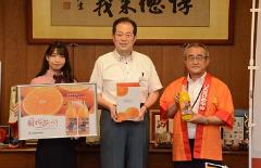 台湾から寄贈いただいた台湾産パイナップルを学校給食で提供するのに合わせ、台北駐日経済文化代表処の謝長廷(しゃちょうてい)代表をはじめ、関係者の皆さんの表敬を受けました。
