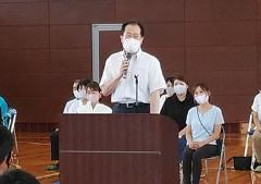 令和3年度松山市小学生夏季全国大会出場者壮行会を開催し、激励の挨拶をしました。