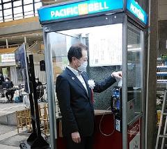 平成元年にサクラメント市から寄贈いただいた公衆電話ボックスを改修し、電話機型の俳句ポストを設置し再利用します。利用開始に合わせ、除幕式を行いました。また、サクラメント松山姉妹都市協会が姉妹都市提携40周年を記念して募集したロゴマークの表彰式を開催しました。