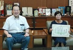 7月21日 内藤完子(すえこ)さんに感謝状を贈呈(市役所)