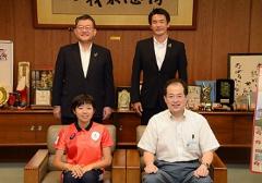 8月2日 廣瀬悠選手と廣瀬順子選手が市長を表敬訪問(市役所)