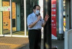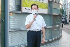 新型コロナウイルス感染症の拡大を食い止めるため、市長が直接市民の皆さんへ感染防止を徹底するよう街頭で呼び掛けました。