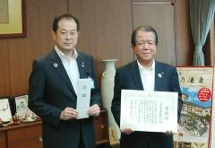 明治安田生命保険相互会社松山支社から、市民の健康増進に役立てるよう寄附をいただき、松山市から感謝状を贈呈しました。