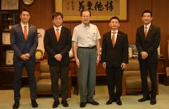 10月5日 愛媛オレンジバイキングスの皆さんが市長を表敬訪問(市役所)