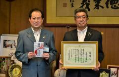 10月13日 水口酒造株式会社代表取締役が市長を表敬訪問(市役所)
