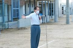 災害に強い水道づくりの一つで、松山市立中島小学校に新しく応急給水栓を設置し、中島小学校の児童や中島地区自主防災連合会と一緒に応急給水訓練を実施しました。
