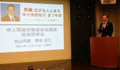 帝人関連労働組合協議会「2021年度役員研修会」に出席し、松山市政について講演をしました。