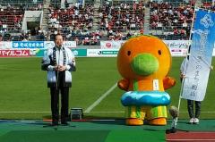 愛媛FCホームゲーム マッチシティ「松山市の日」愛媛FC VS 京都サンガF.C.の試合前セレモニーで挨拶をしたほか、試合を観戦しました。