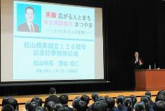 松山商業高等学校創立120周年記念講演会で、次代を担う皆さんへ講演しました。