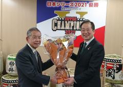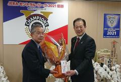 株式会社ヤクルト球団代表取締役社長を表敬訪問し、東京ヤクルトスワローズのSMBC日本シリーズ2021優勝をお祝いしました。