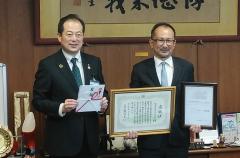 株式会社アラミックから、松山市の節水を推し進めるため企業版ふるさと納税を活用した寄附をいただき、松山市から感謝状と松山市地方創生パートナー認定証を贈呈しました。
