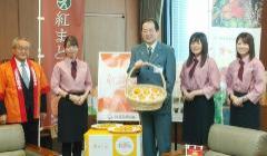 まつやま農林水産物ブランド「紅まどんな」が全国一斉販売されるのをPRするため、えひめ中央農業協同組合の皆さんの表敬を受けました。