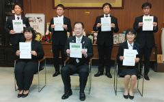 令和3年度まちづくり提案制度の補助金を活用する、味生2サンクス絆の皆さんの表敬を受けました。コロナ禍で働く人に感謝を伝えるポスターや感染予防を呼び掛けるステッカーなどを作成し、配布するなど活動が報告されました。
