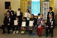 三輪田米山生誕二百年記念事業の一つで、松山市内の小学生と中学生が自作の俳句を自筆の書で表現した「俳句と書のコンクール 筆で書く五七五」表彰式を行いました。