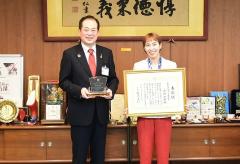 第32回オリンピック競技大会バスケットボール女子の日本代表で、銀メダルを獲得された宮崎早織選手に松山市文化スポーツ栄誉賞表彰を行いました。