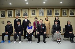 スポーツや文化活動で日本一に輝くなど優秀な功績を収めた個人2名、連名1組、1団体にかがやき松山大賞表彰を行いました。
