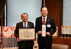 株式会社愛媛銀行と株式会社クロスサービスから、松山市の地方創生を応援し地域活性化を進めるため「松山市地方創生推進寄附金」へ寄附をいただき、松山市から感謝状を贈呈しました。